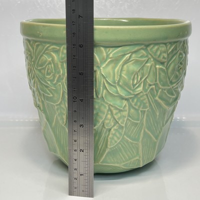 Vintage Mccoy Pottery Planter Green Jardiniere Rose Pattern Pot 7 1 2 Top Dia Ebay